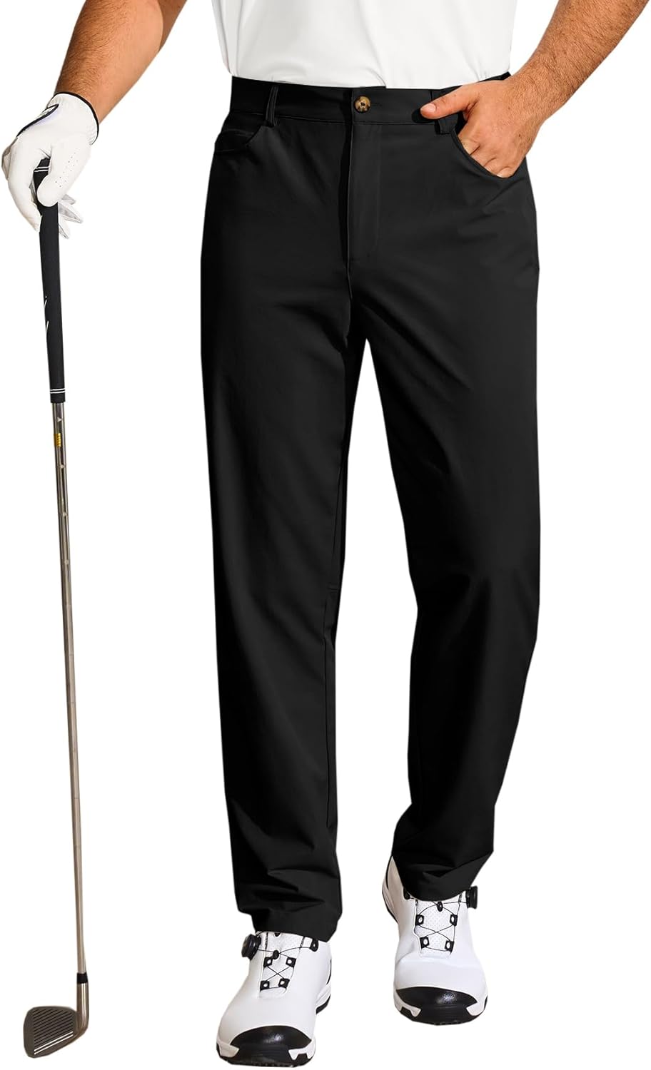 Runcati Mens Golf Pants Casual Flat-Front Stretch Work Dress Pants Lightweight Business Slacks