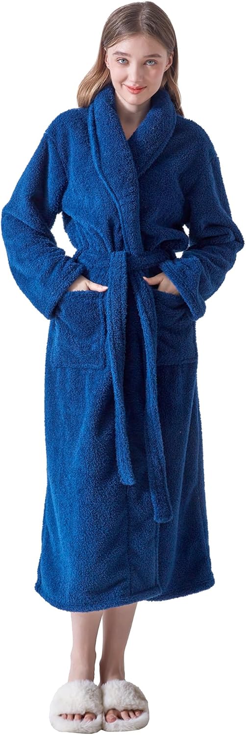 Robes for Women – Premium Plush Fleece Long Bathrobe for Women with Shawl Collar, Soft Warm Womens Robe