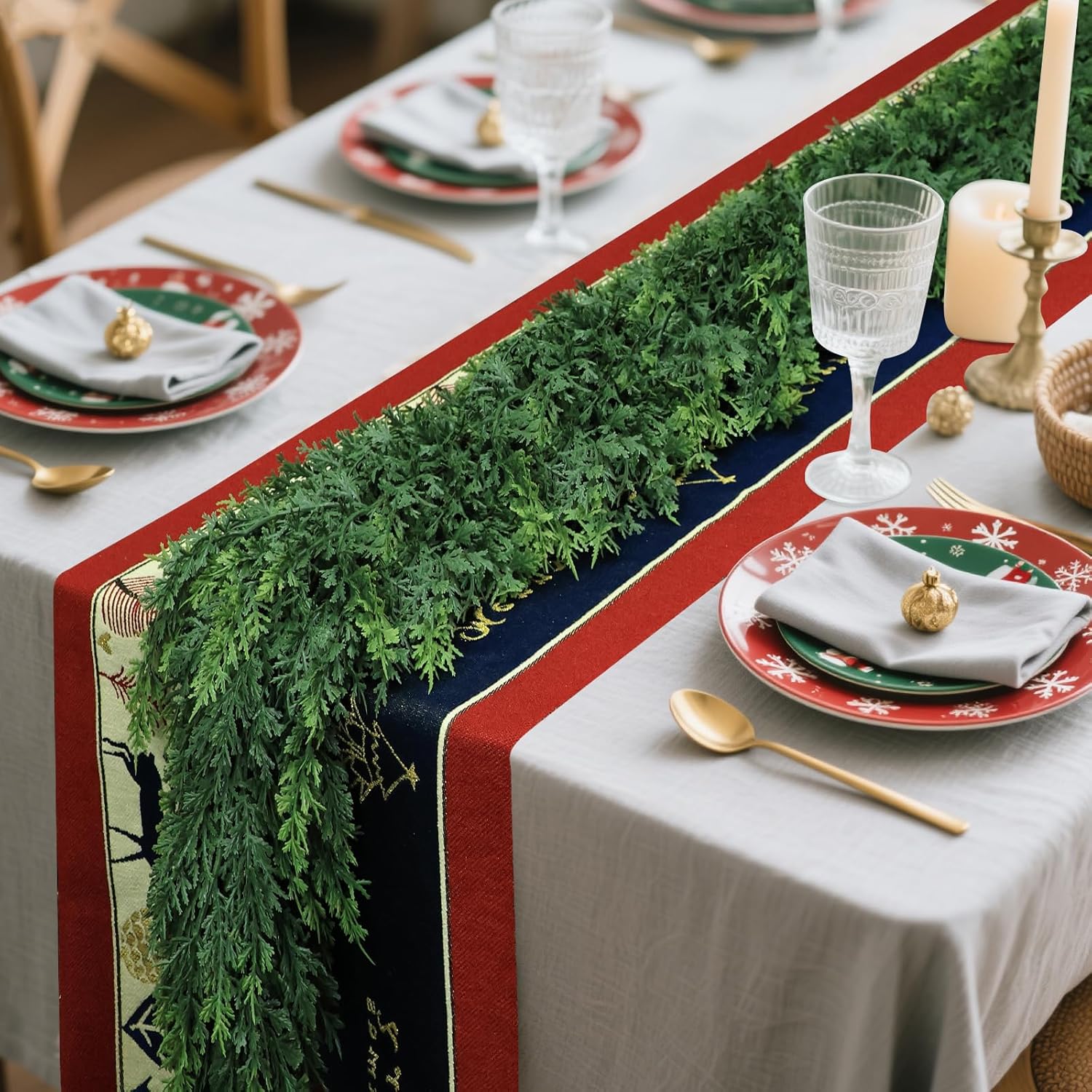 - Lifelike Design & Premium Material – Crafted from high-quality polyethylene, this cedar garland mimics the natural look and feel of real cedar. The soft, draping leaves create a realistic touch and bring elegance to your holiday décor.