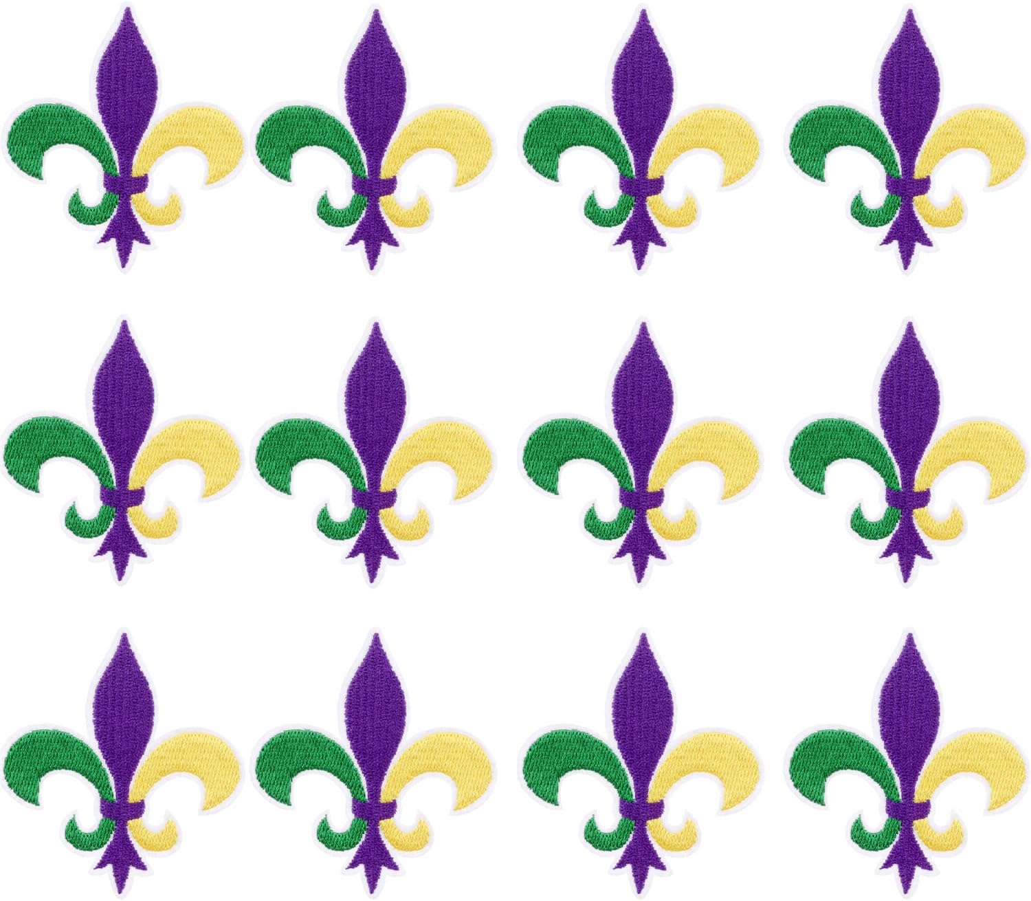 Colorful Fleur De Lis Patch Mardi Gras Iron On Embroidered Patches Transfer Applique Iron-on Patch for Clothing Machine Embroidery DIY 12PCS (Colorful)