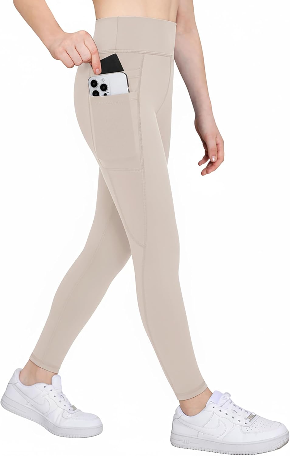 Zaclotre Girls Athletic Leggings with 4 Pockets High Waist Tights Kids Workout Yoga Pants for Running Dance