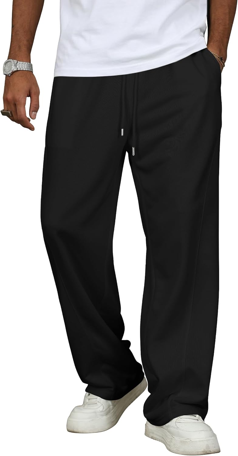 ZAFUL Men's Baggy Sweatpants Solid Color Wide Leg Sweat Pants Casual Loose Lounge Pants with Pockets