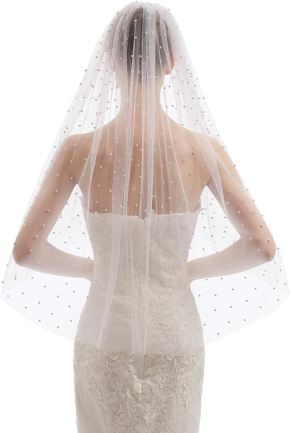 Womens 1 Tier Fingertip Length Pearl Wedding Bridal Veil With Comb X01