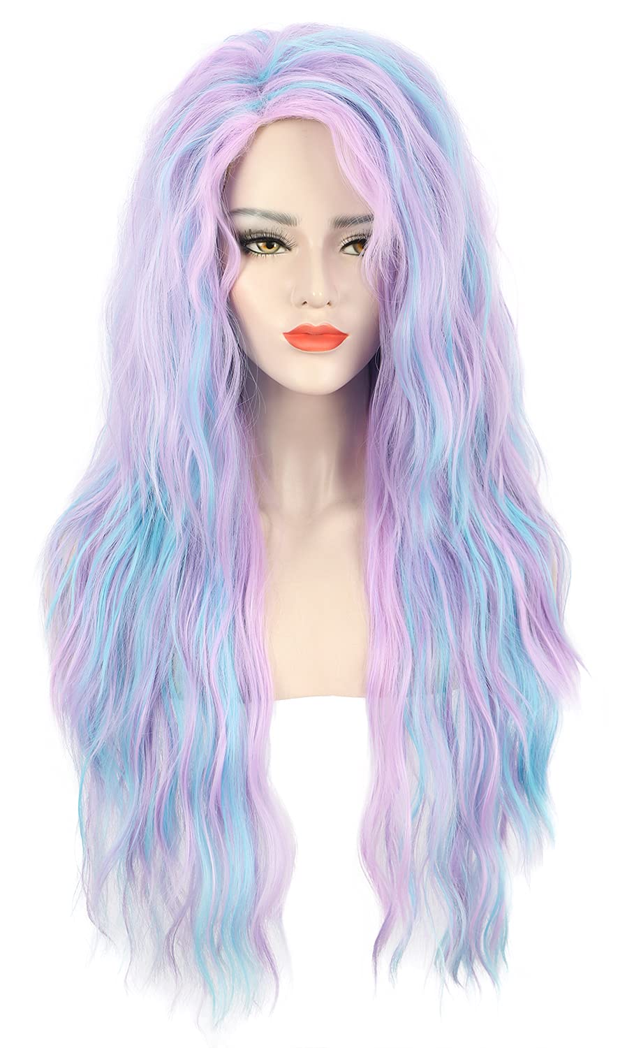 karlery 30'' Adult Women Long Wave Blue and Purple Wig Halloween Cosplay Costume Party Wig