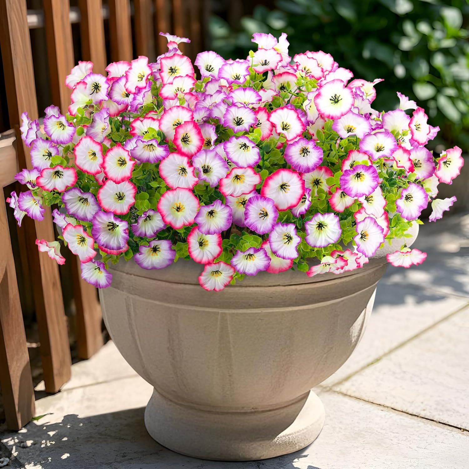 - Perfect for Outdoor and Indoor: These fake plastic plants are perfect for enhancing your backyard, garden, front porch, balcony, window sill, or even your office. The mix of morning glories and eucalyptus leaves gives any location an effortless yet charming touch of nature