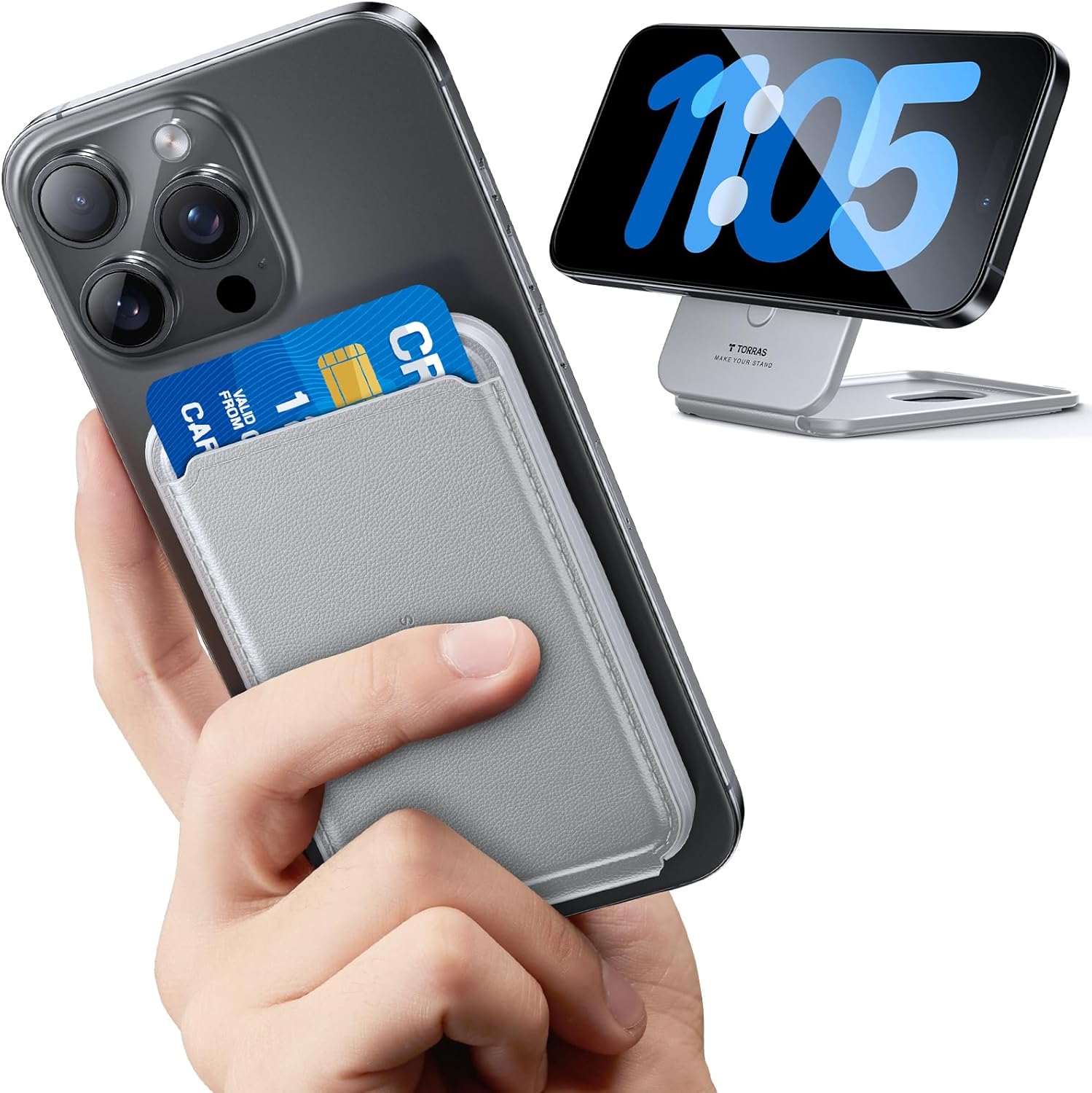 TORRAS for MagSafe Wallet, 360°Spin Magnetic Stand, 18N Strongest Magnet, 3 Card Holder, Leather Minimalist Slim Wallet for iPhone 16/15/14/13/12, Samsung Galaxy & Google with Magnetic Case, Grey