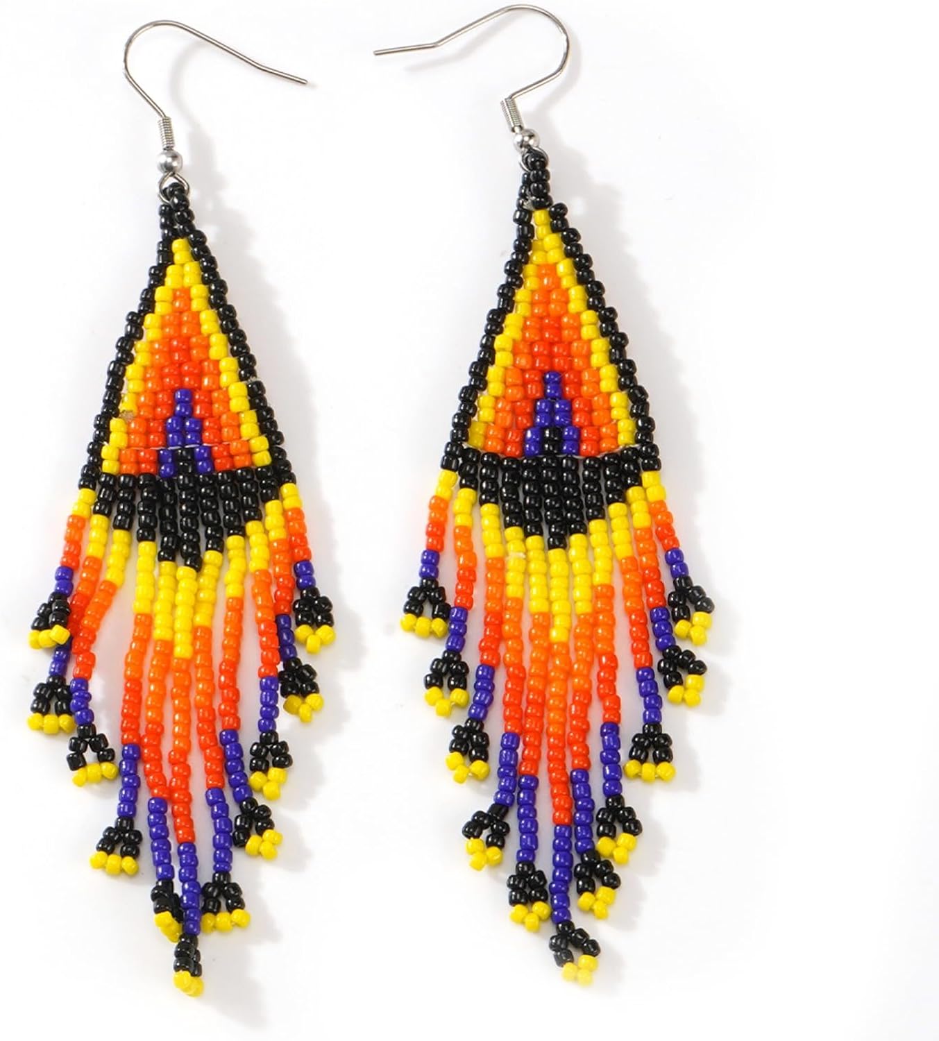 Bohemian Beaded Long Tassel Dangle Earrings for Women, Handmade Jewelry White Tarnish Resistant Lightweight Design, Stylish Accessory for Beach Vacation Party and Gift