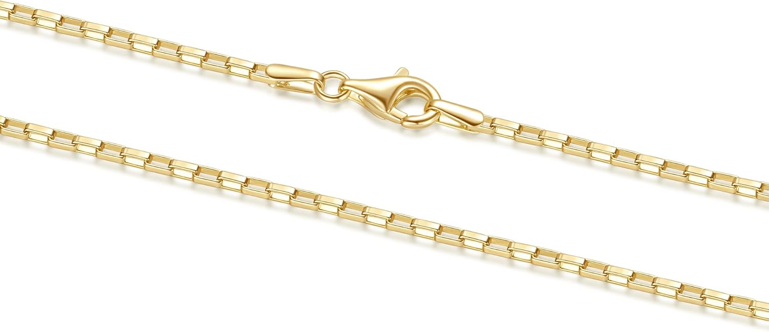 Gold Box Chain Necklace for Women 14K Gold Necklaces for Women Trendy 1.5/4mm Wide Box Chain for Men Bold Rectangle Link Design Chain Necklaces for Womens 16/18/20/22/24 inches