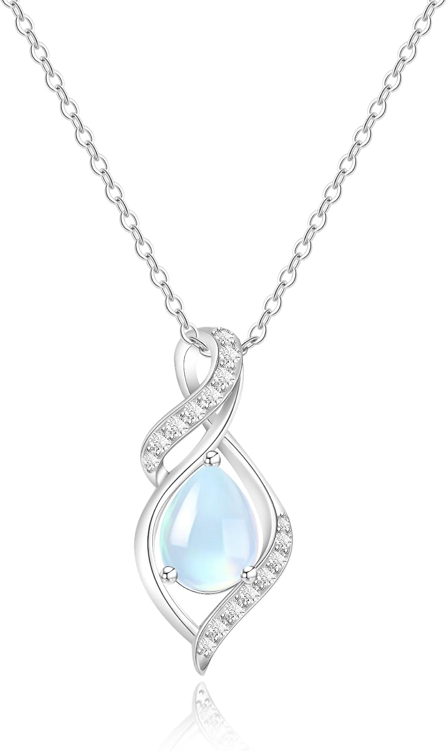 925 Sterling Silver Moonstone Necklace New Beginnings, Valentine's Day Jewelry Gifts, Created Moonstone Jewelry June Birthstone Necklace for Women, Inspirational Birthday Graduation Gifts for Her Best Friend Sister Daughter Mom