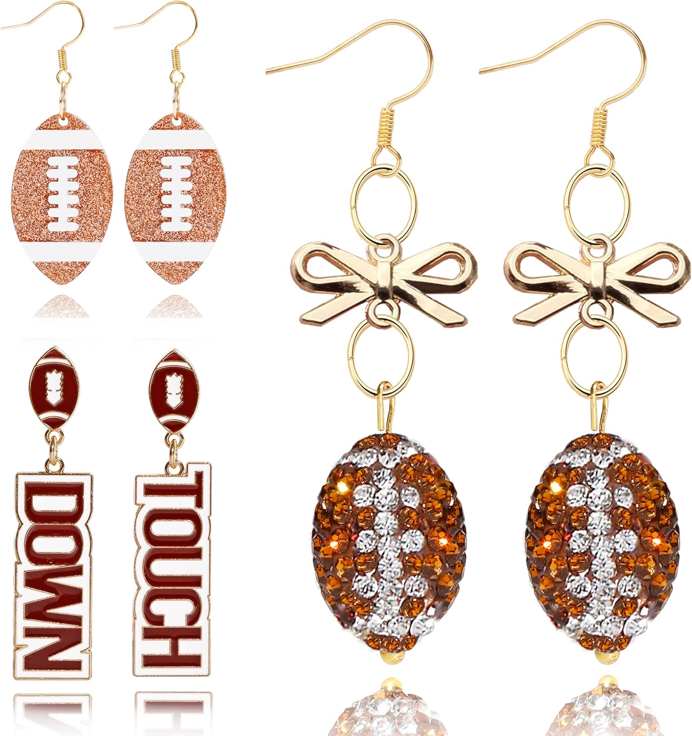 3 Pairs Football Earrings for Women Football Mom Game Day Earring Accessorie & Sports Jewelry