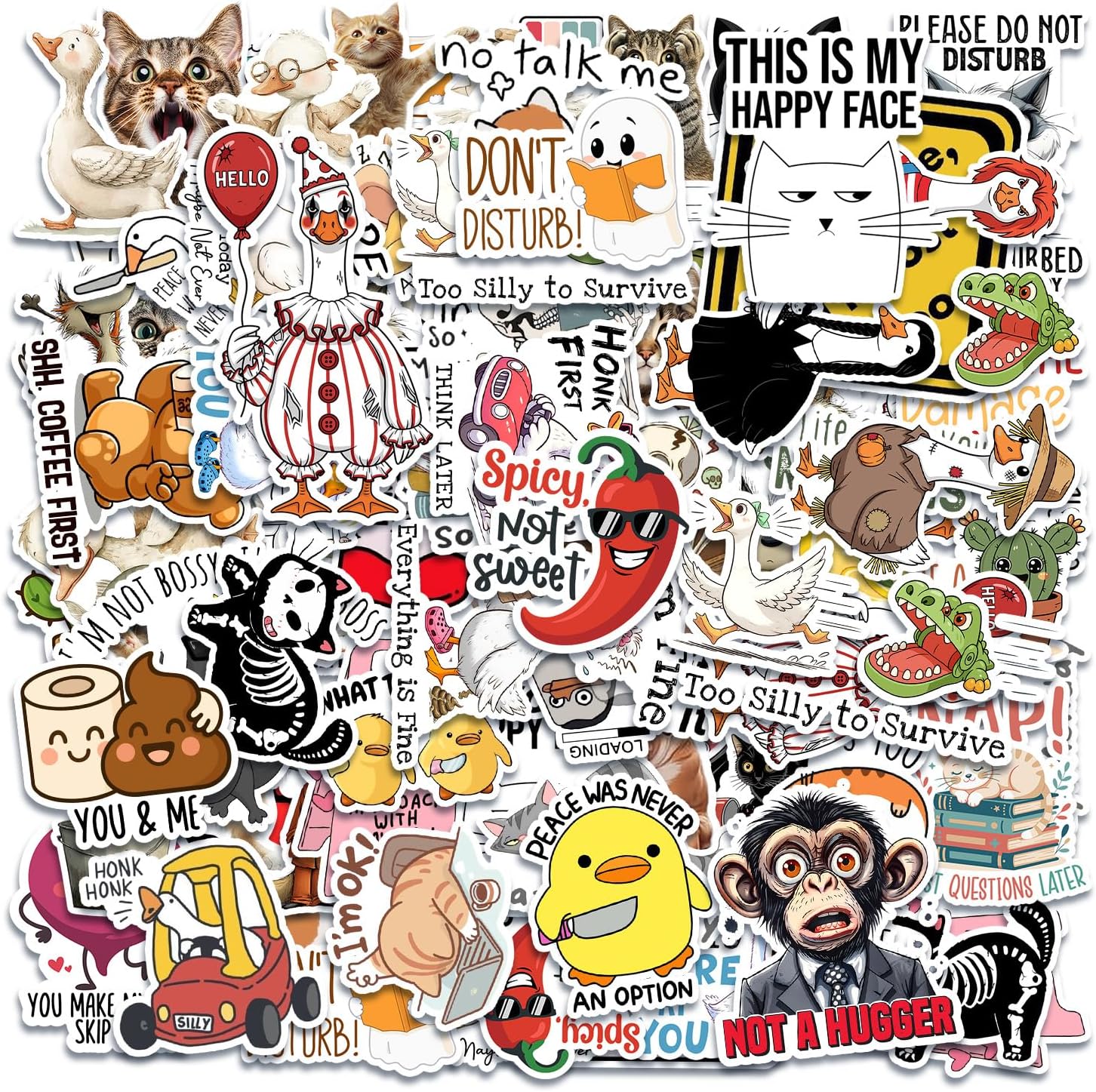 - 🤜 [100PCS FUNNY STICKERS FOR ADULTS] : Meme Water Bottles Sticker Pack Waterproof Adult Stickers for Laptop, Water Bottle, Hard Hats, Sarcastic, Scrapbooking Decals
