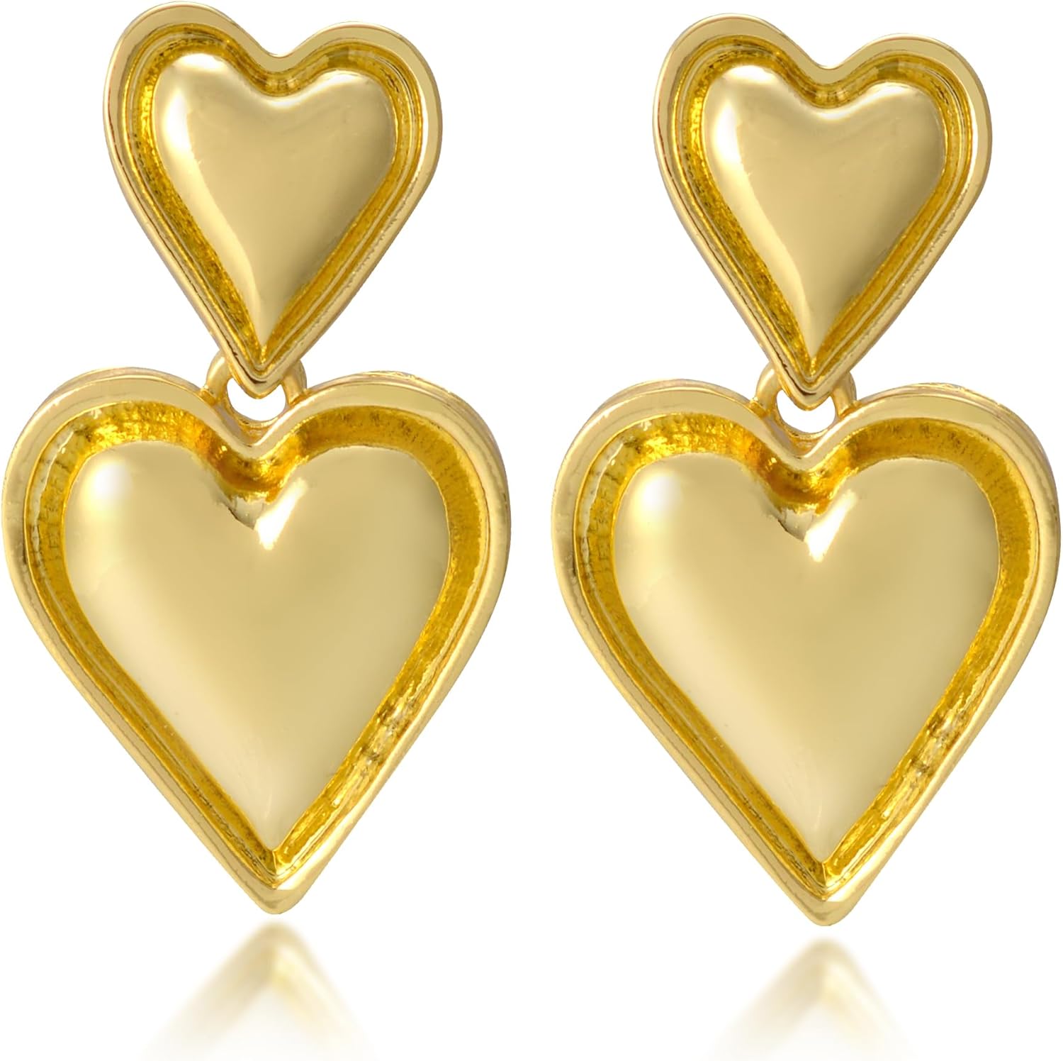 Double Heart Drop Earrings for Women Trendy Gold Plated Statement Dangle Earrings Jewel Gift