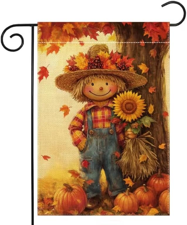 - Size: Only 1 piece of garden flag (flag stand/flag pole is not included). Fall scarecrow pumpkin maple leaves sunflower garden flag measures 12 inches X 18 inches, easy to install, easily pass the garden flag through the holes on both sides of the top, hang it on the garden flag stand, and can be used with any standard flagpole or banner stand.