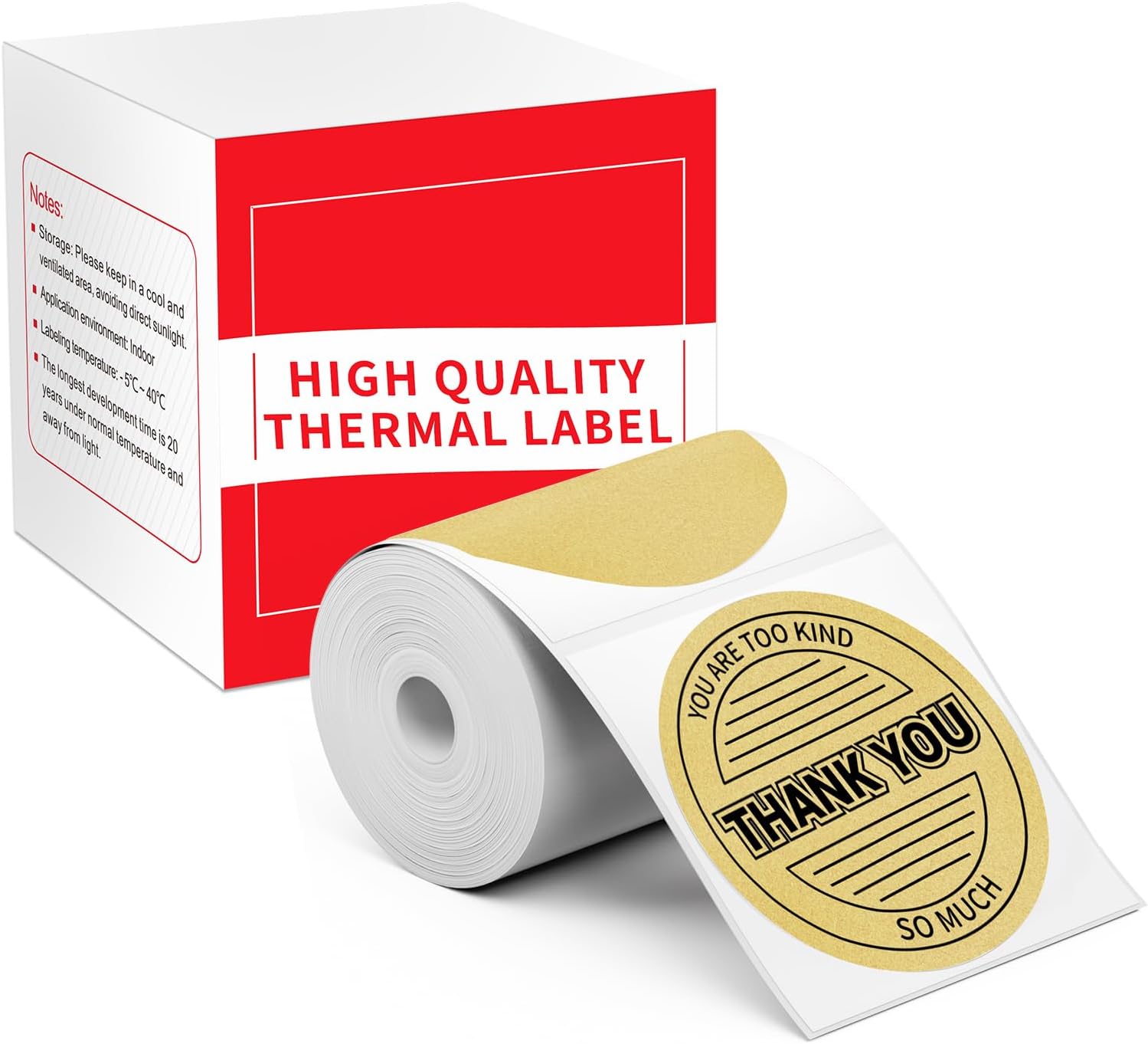 M110 Label Compatible with M100/M110/M120/M260/M220/M150/M421/241BT/243BT, 1.96" x 1.96"(50x50 mm), Thermal Circle Gold Paper for Logo/Thank You Label/Small Business/,140/Roll