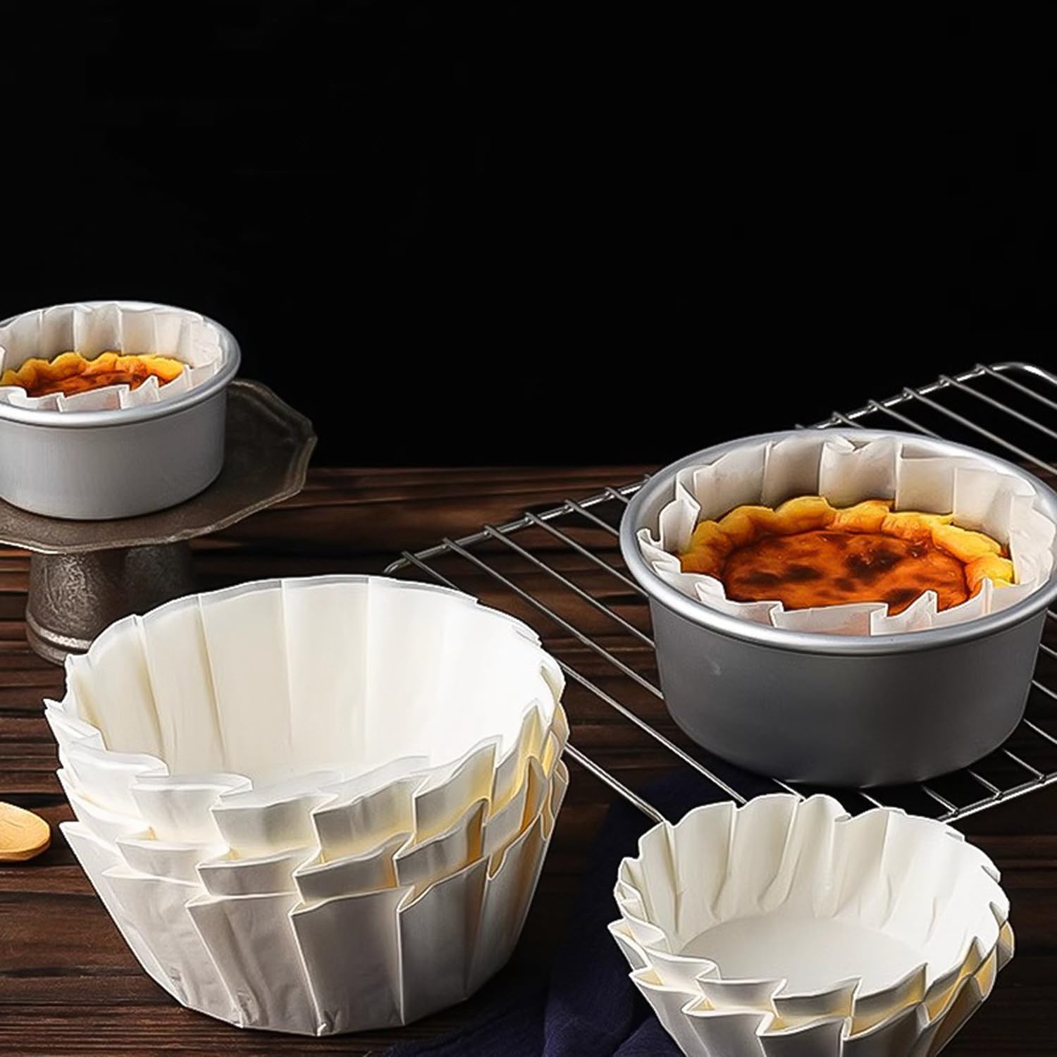 50pcs 4 Inch Basques Cake Paper Disposable Parchment Liners Muffin Wrappers Oil Paper for Cheesecake, Cupcake, Cake Pan, Oven, Air Fryer, Baking Tools