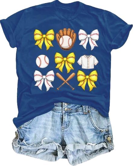 Baseball Shirts for Women Baseball Bow Graphic T-Shirt Softball Mom Tee Game Day Gifts Casual Short Sleeve Tops