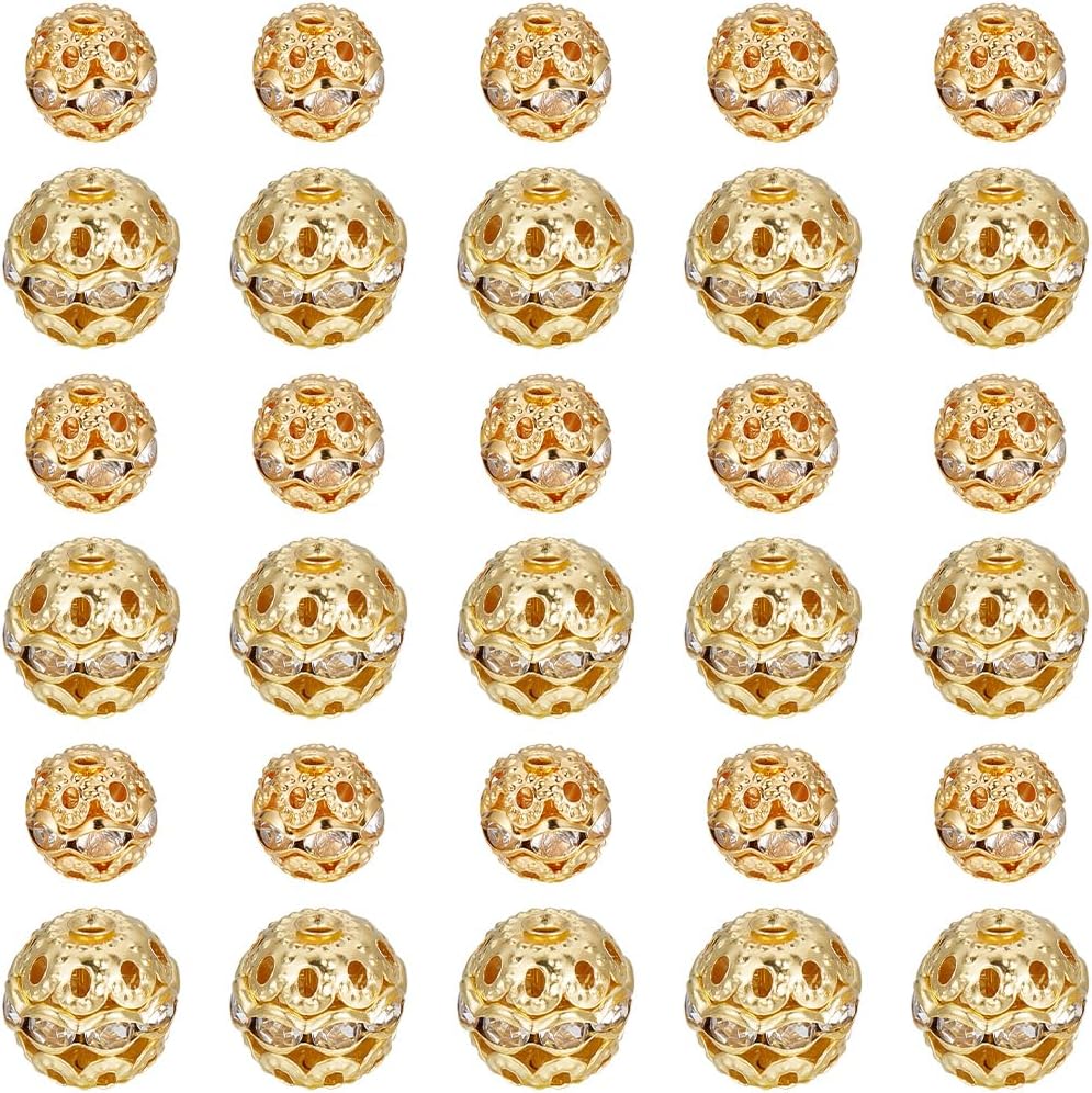 SUNNYCLUE 1 Box 120Pcs Gold Disco Ball Beads Rhinestone Bead Making Kit Metal Alloy Antique Round Hollow Czech Bubblegum Crystal Loose Spacer Beads for Jewelry Making Bracelet Necklace DIY Crafts