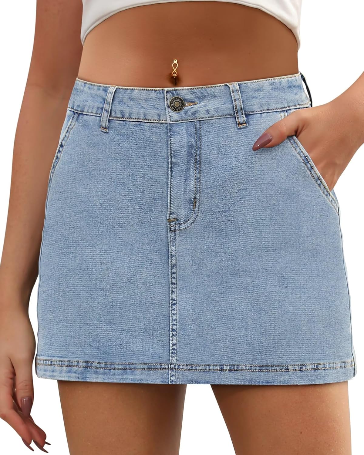 Denim Skorts for Women Skirt Stretchy High Waisted Womens Skirts Asymmetrical Hem Mini Jean Skirt with Shorts