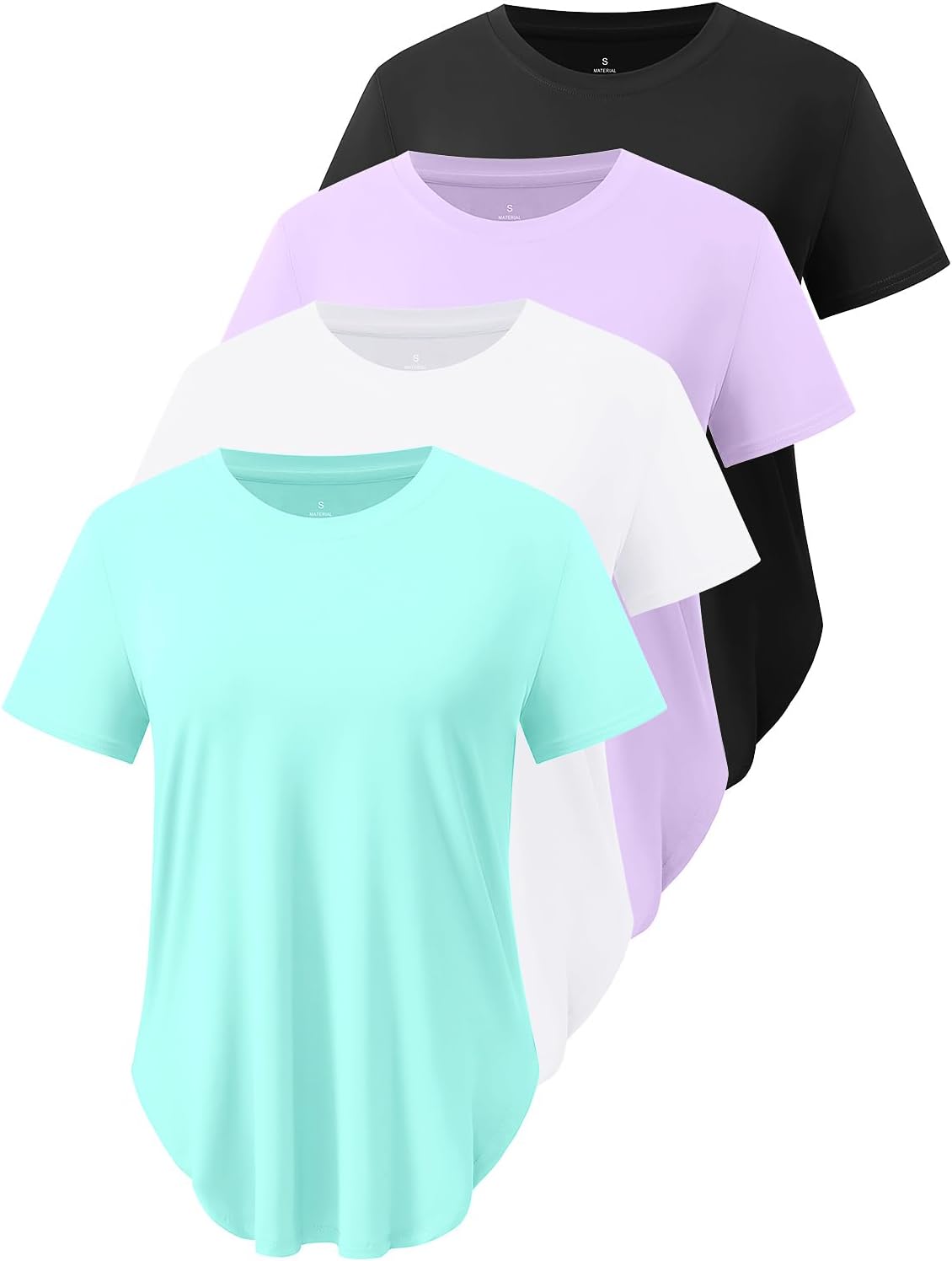 Cosy Pyro 4-Pack Workout Tops for Women UPF 50+ Yoga Shirts Short Sleeve Athletic T-Shirts Quick Dry Running Gym Tee