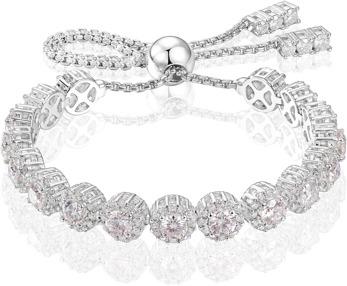 Moissanite Halo Bracelet 4.9CT-8.0CT Lab Grown Moissanite Bracelet for Women 18K White Gold Plated S925 Sterling Silver Adjustable Tennis Bracelet 5MM/7.5MM Iced Out Bracelets Cluster Jewelry