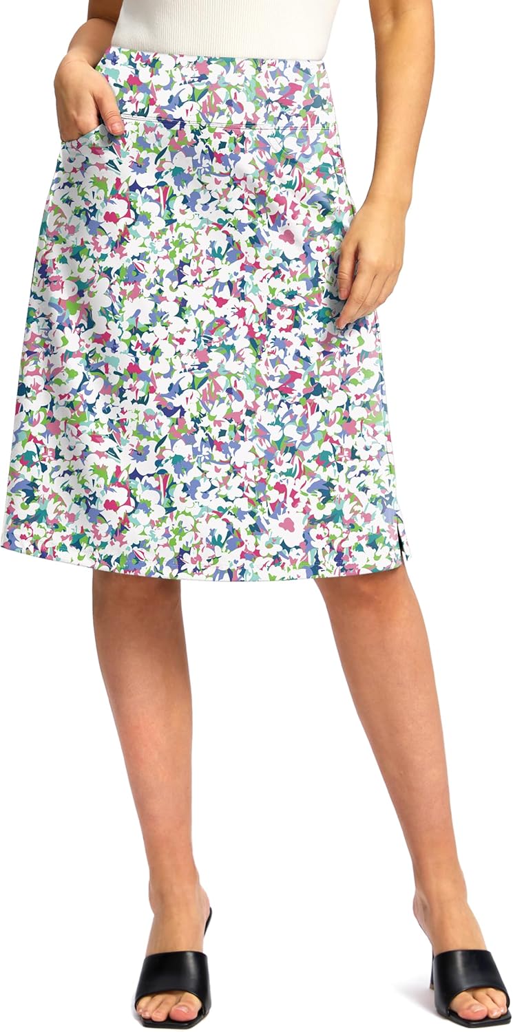 Viodia 25" Knee Length Skorts Skirts for Women with Zipper Pockets Stretchy Modest Aline Midi Skort for Casual Summer Travel