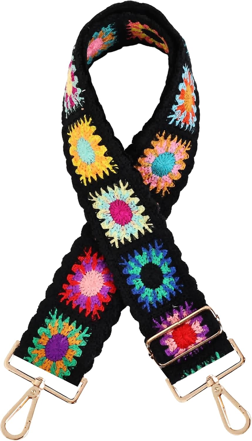 Embroidery Flower Purse Strap Replacement Adjustable 2in Wide Crossbody Shoulder Strap for Handbags Women Crochet Bag Strap