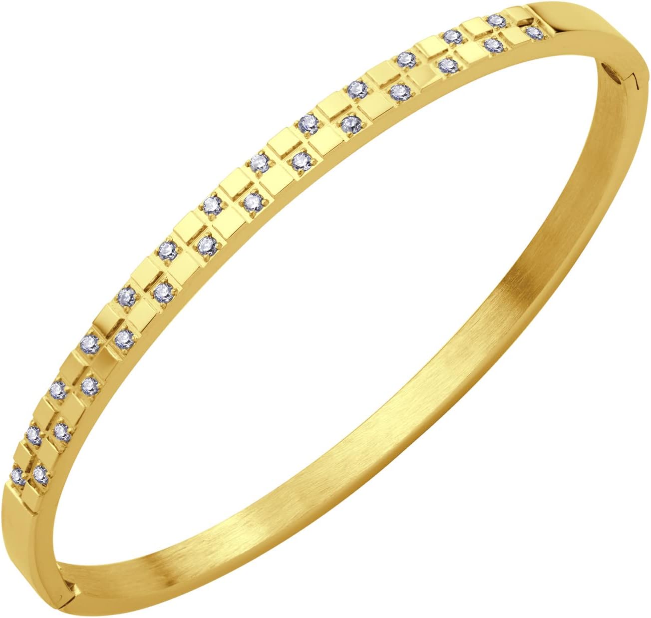 555Jewelry Luxury CZ Stainless Steel Hinged Cuff Bangle Bracelet for Women