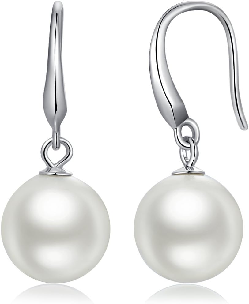 Han han 925 Sterling Silver Pearl Dangle Earrings for Women 10MM