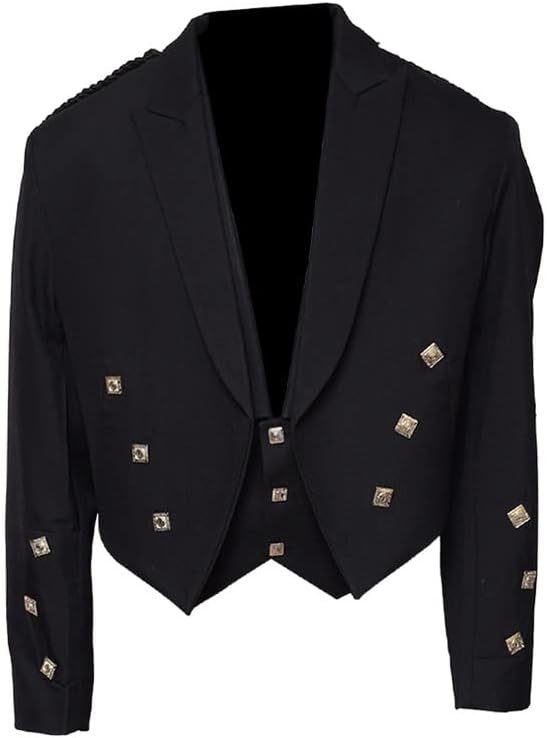 David Rox Prince Charlie Jacket & Waist Coat Black Barathea Wool Fabric | Prince Charlie Kilt Jacket with Coatee Vest Jacket (as1, Numeric, Numeric_52, Regular, Regular, Black, Long)