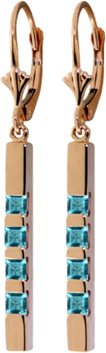 14k Rose Gold Dangle Bar Earrings with Blue Topaz