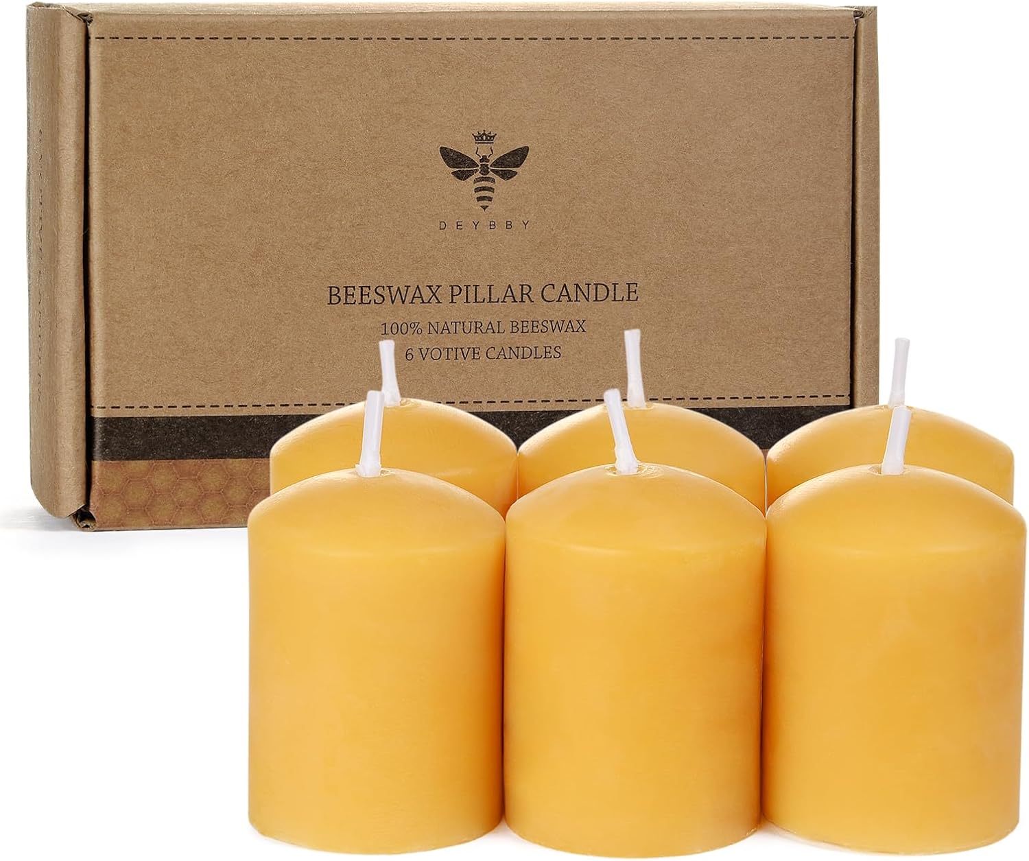Beeswax Votive Candles-6 Pack Natural Small Votives Set for Home Room Decor Party Wedding Spa Gift
