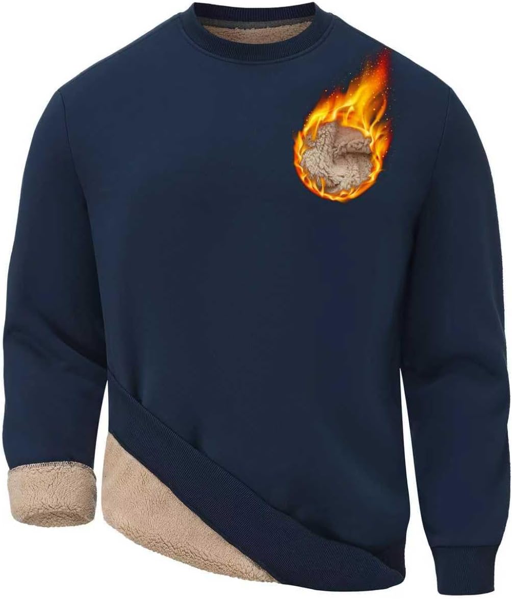 HODOSPORTS Mens Crewneck Sherpa Lined Sweatshirts Fleece Lined Pullover Shirts Warm Heavyweight Basic Tops Winter Clothes