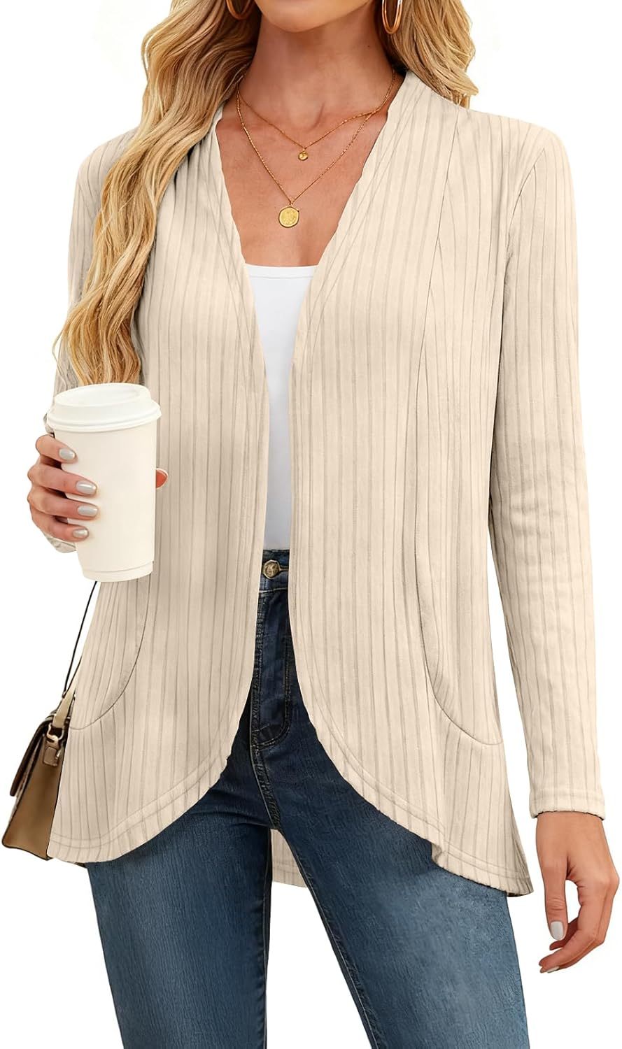 DouBCQ Womens Long Sleeve Cardigan Lightweight Casual Open Front Ribbed Knit Sweater Cardigans