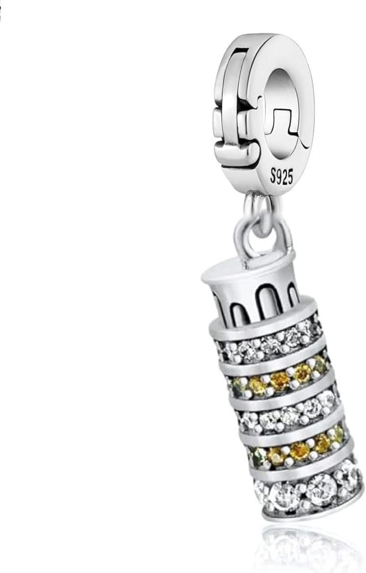 Leaning Tower of Pisa Italy Multi-Clasp Clip On Pendant Sterling Silver Charm Bead For Pandora & Similar Charm Bracelets or Necklaces & More
