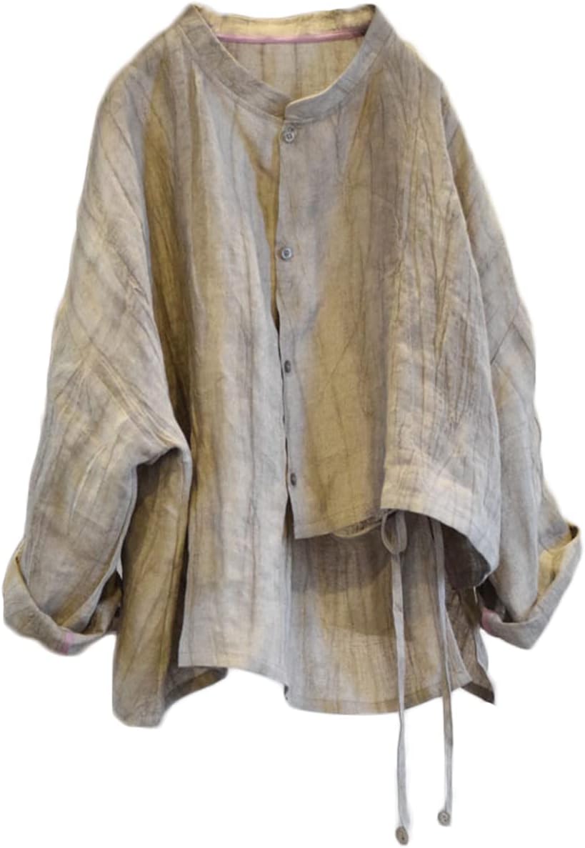 NFYM Women's Linen Asymmetrical Shirt Top Irregular Hem Tie Retro Stand Collar Button Blouse Shirts
