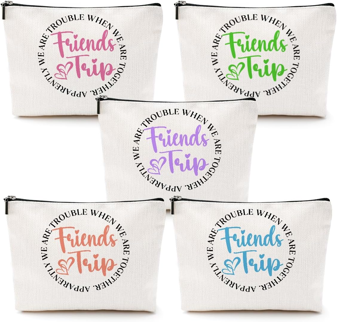 5 Pcs Girls Trip Gifts Girls Weekend 2026 Makeup Bag Friends Trip Gifts Favors Summer Gifts Cosmetic Bag Toiletry Bag Zipper Pouch Weekender Bags for Women Girl Friendship Bachelorette Party Birthday