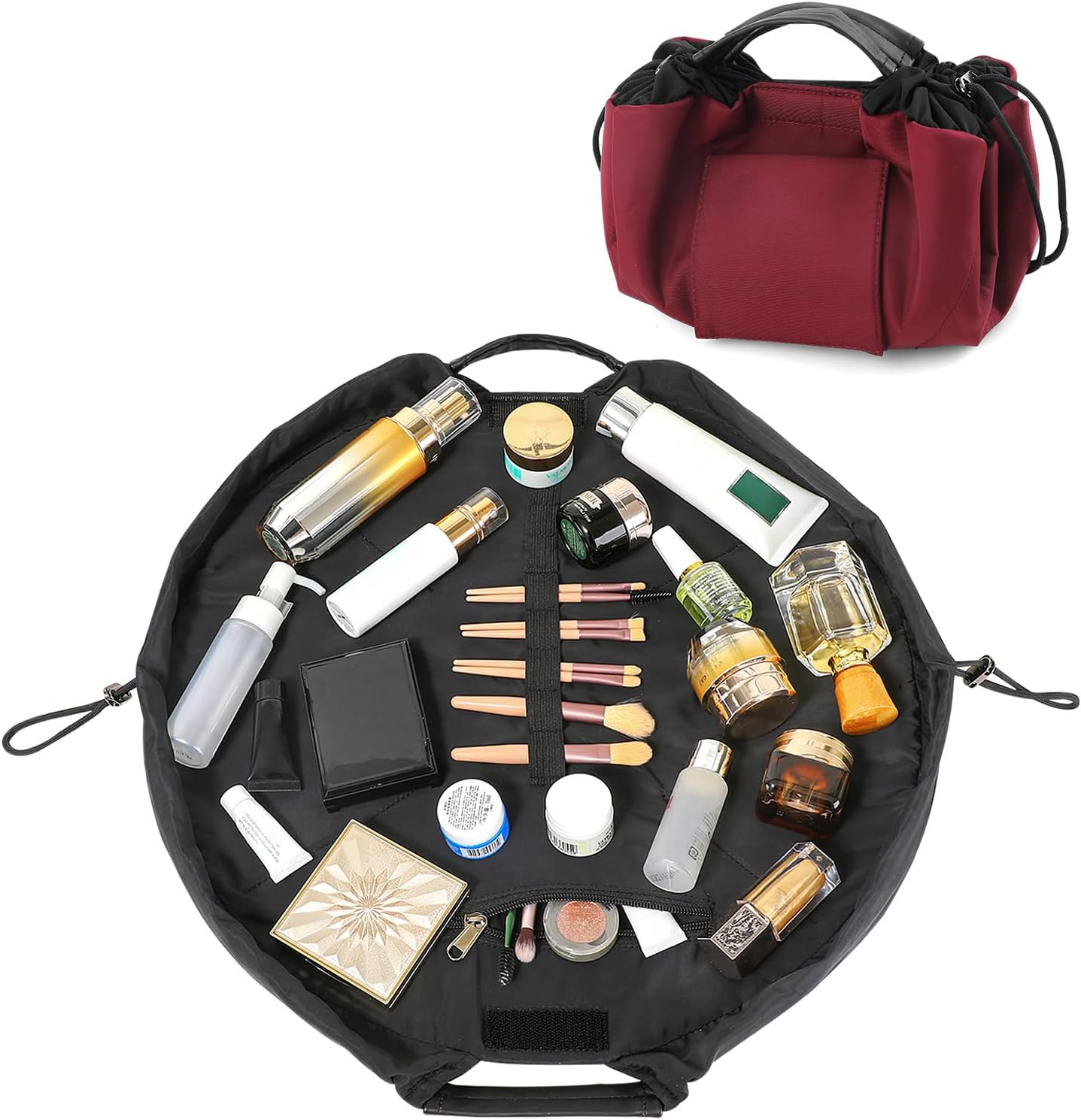 Vomgomfom 20 inch Drawstring Makeup Bag Open Flat,Waterproof Magic Cosmetic Pouch for Women (J-Wine Red)