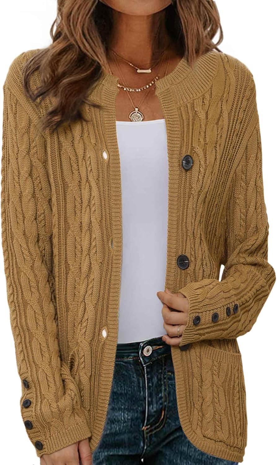 Allegra K Button Up Cardigan Sweaters for Women Dressy Cable Knit Fall Winter Open Front Long Sleeve Casual Cardigans Jacket