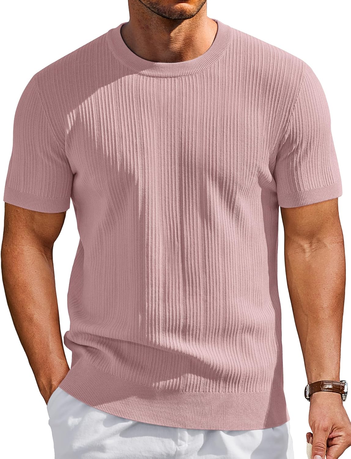 COOFANDY Men's T-Shirts Short Sleeve Knit Shirts Casual Crewneck Ribbed Dress Tee Shirt