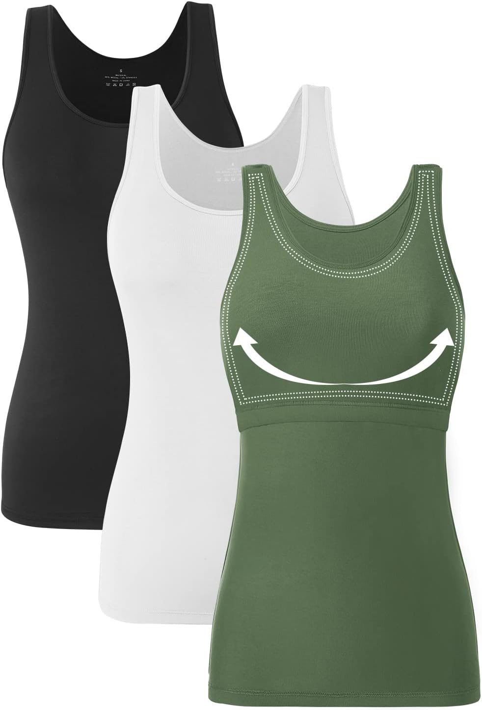 Orrpally Basic Tank Top with Bra for Women Cotton Shelf Bra Undershirt Cami Tank Tops 3-Pack