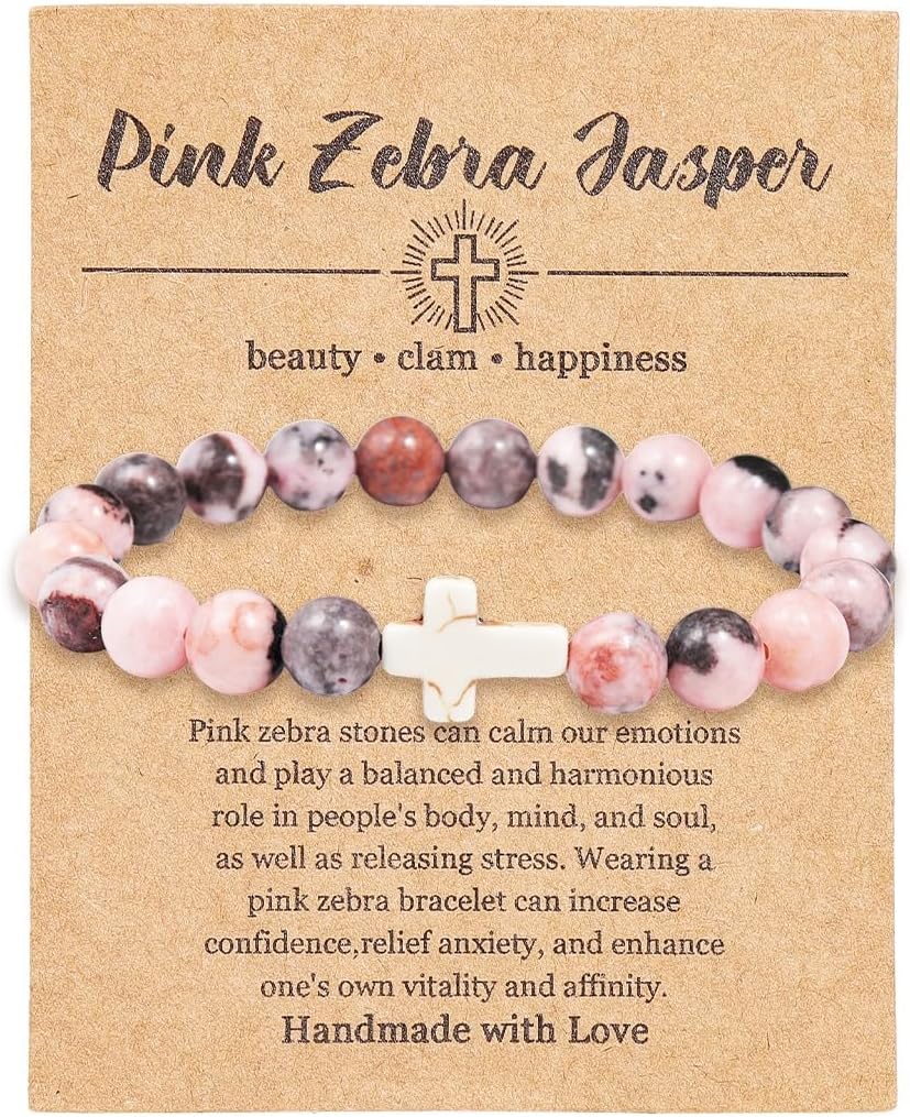 Pingyongchang Christian Gifts for Women Men Cross Healing Crystal Bracelet Faith Easter Catholic Religious Bracelet Natural Stone Stretch Bracelets Stress Relief Anxiety Yoga Bracelet For Teens