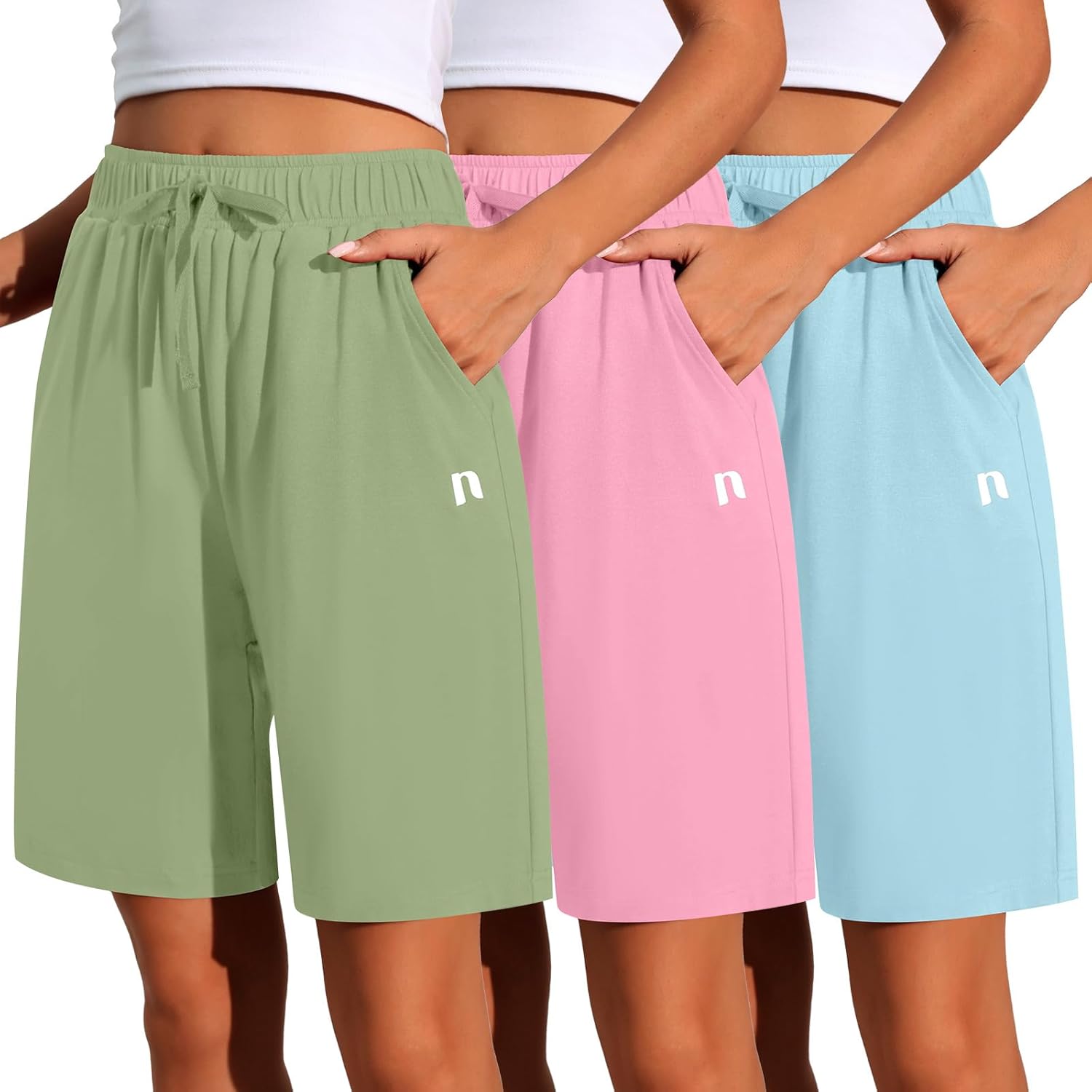 Neer 3 Pack Women's Quick Dry Shorts Women Drawstring High Waisted Bermuda Athletic Shorts with Pockets
