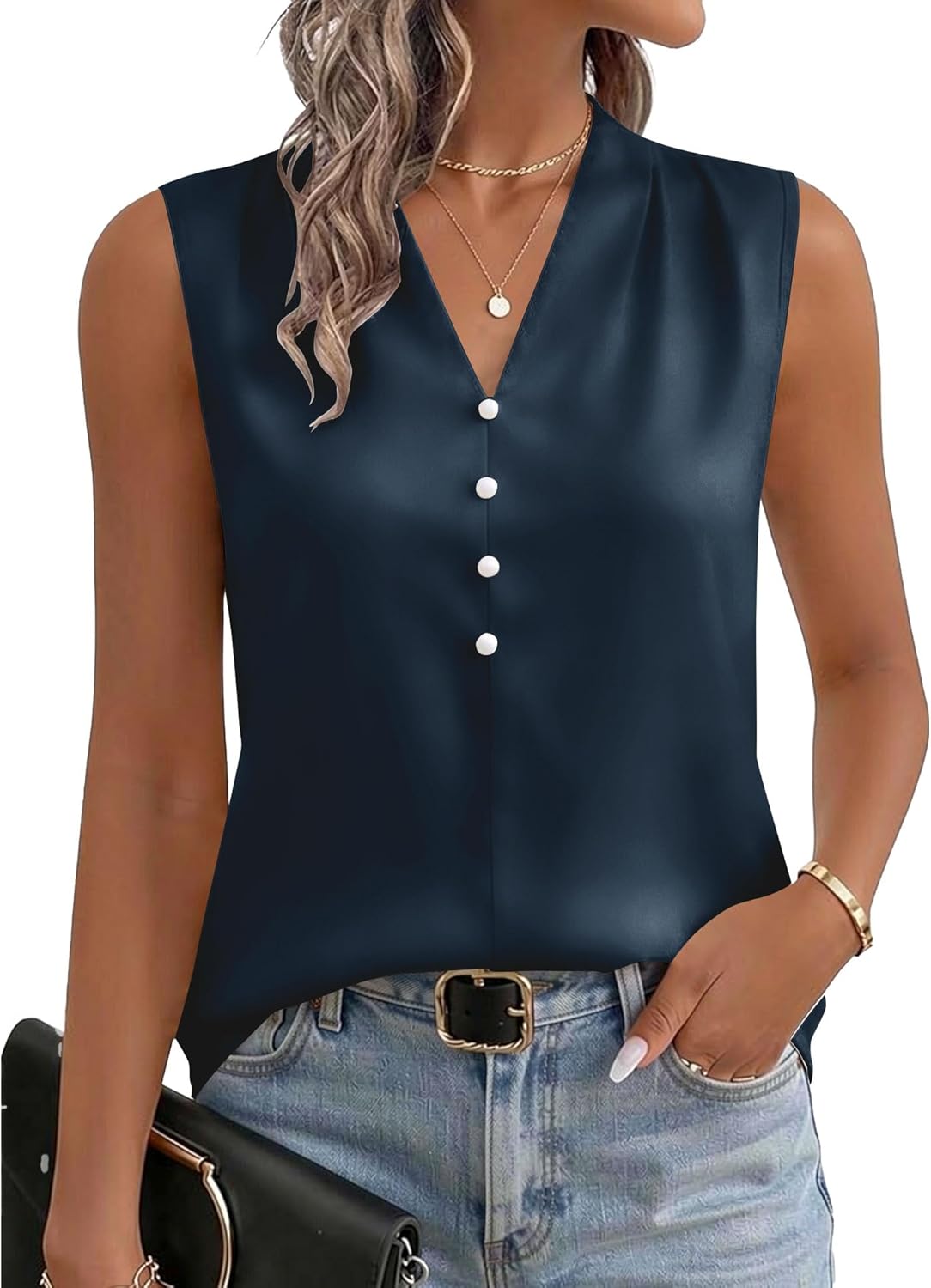 LOMON Silk Satin Tank Tops Womens V Neck Sleeveless Camisole 2026 Basic Shirts Casual Blouses