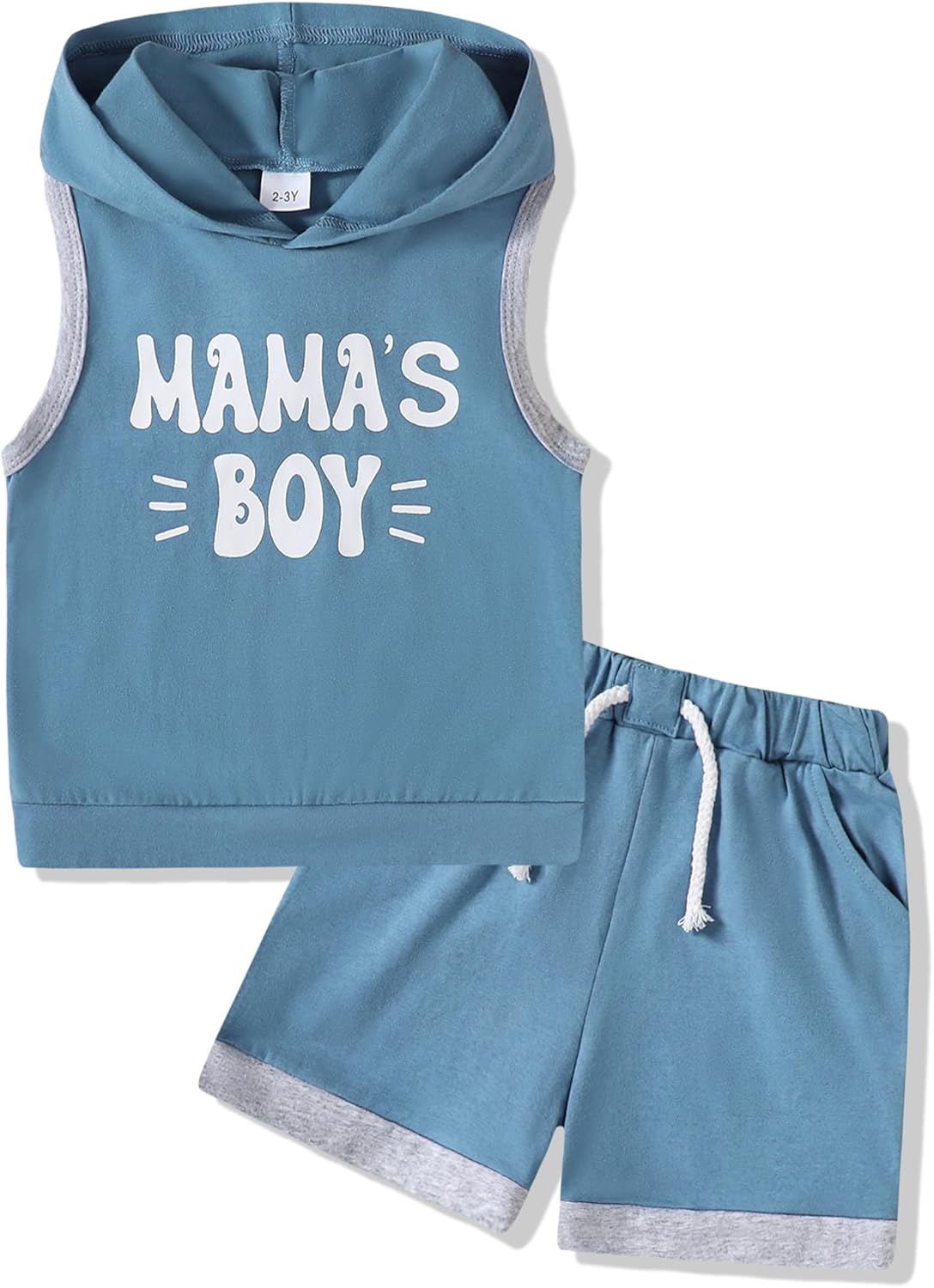 SANMIO Toddler Boy Clothes Summer Outfits Hoodie Sleeveless Tank Tops and Shorts Set with Pockets 2 Piece Clothing Set