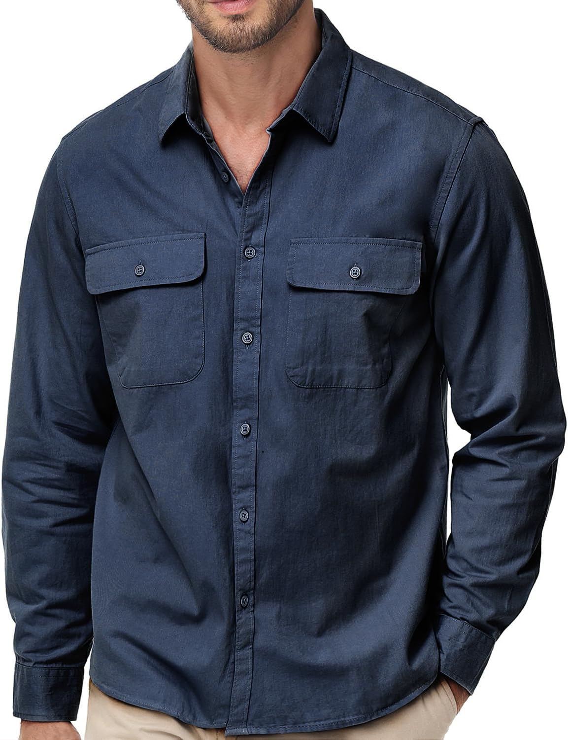 TUNEVUSE Mens Western Shirt Casual Long Sleeve Button Down Shirts Regular Fit Button Up Work Shirts with Two Pockets Cotton