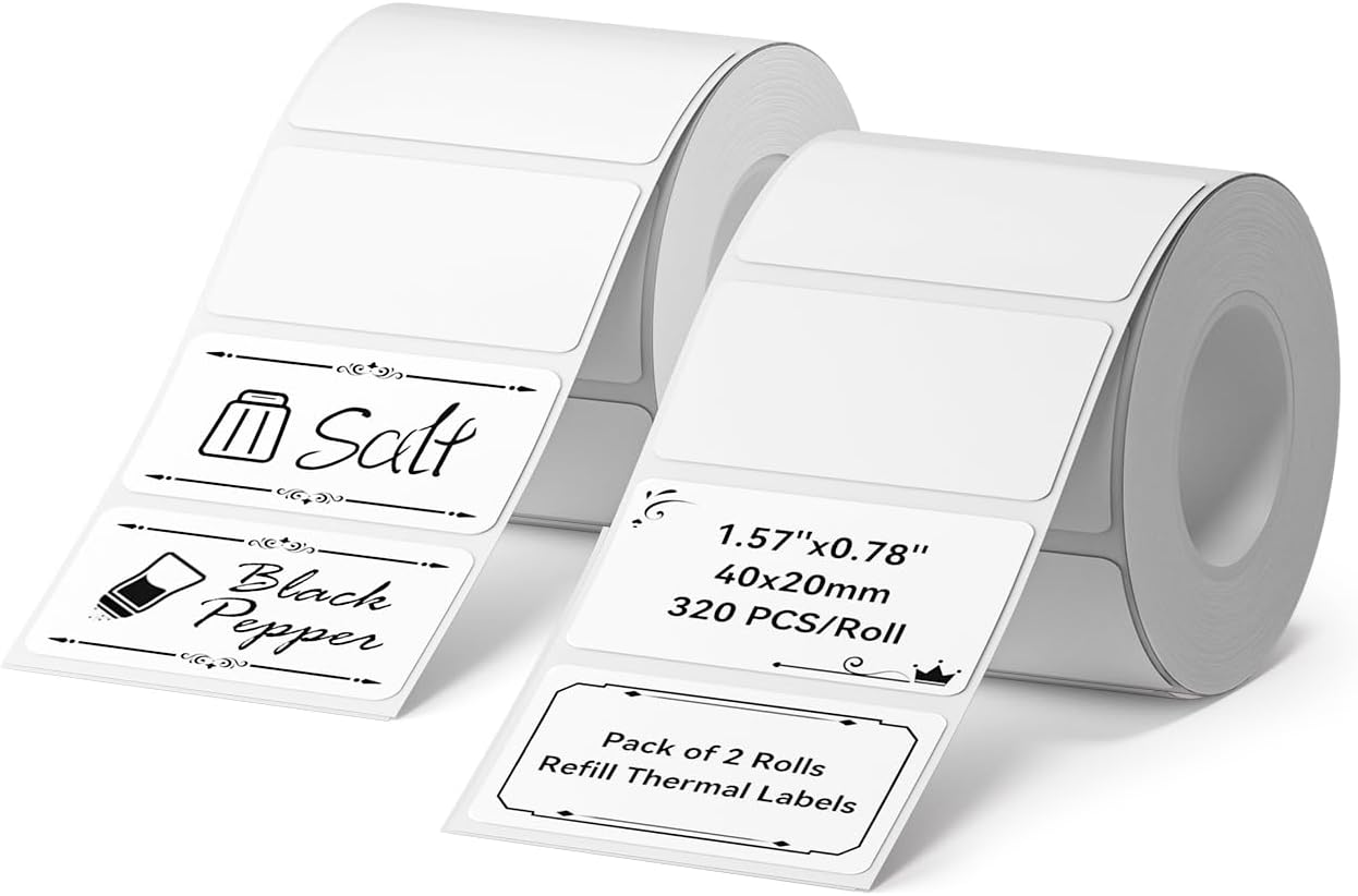 - Thermal Labels: 320 Labels/Roll, 2 roll refill NIIMBOT Label 1.57'' x 0.79'' (40x20mm)