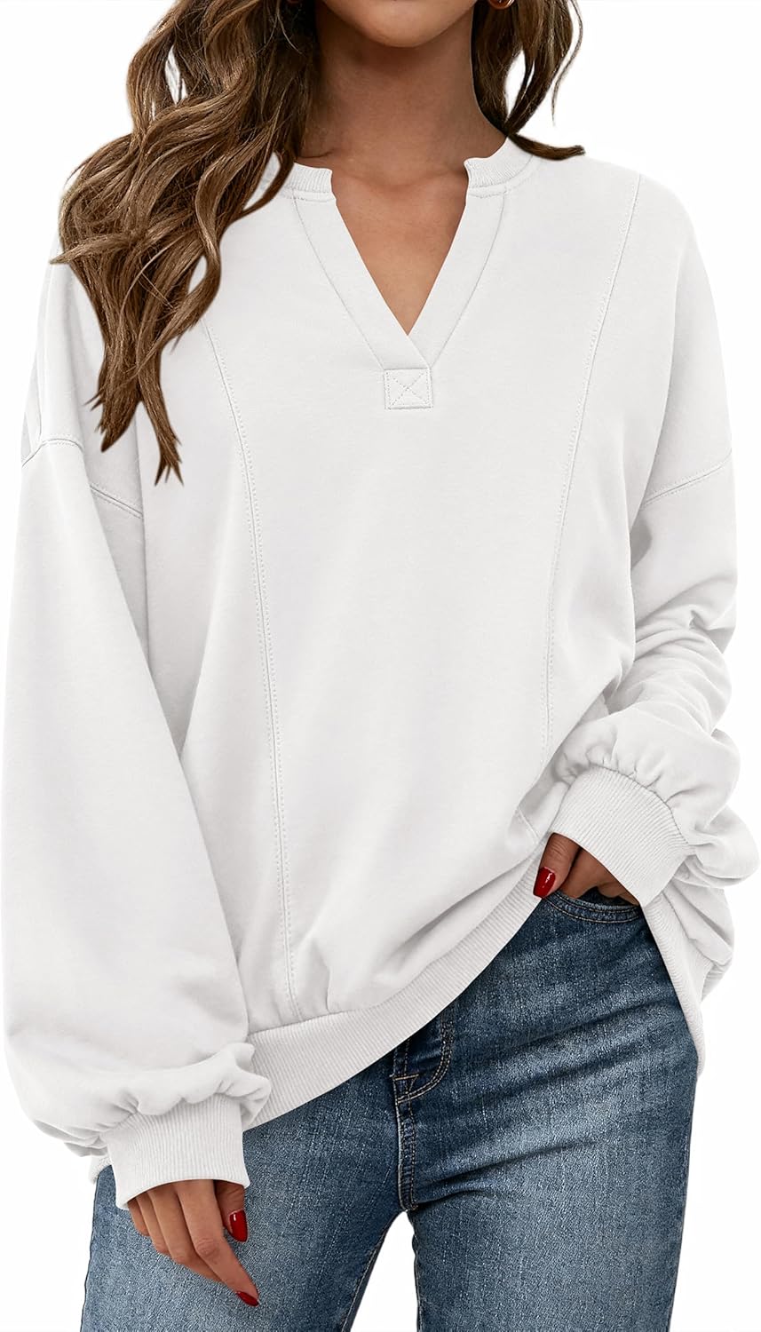 dowerme Oversized Sweatshirt for Women Casual Long Sleeve V Neck Comfy Fleece Pullover Tops Pockets Fall Outfits 2025