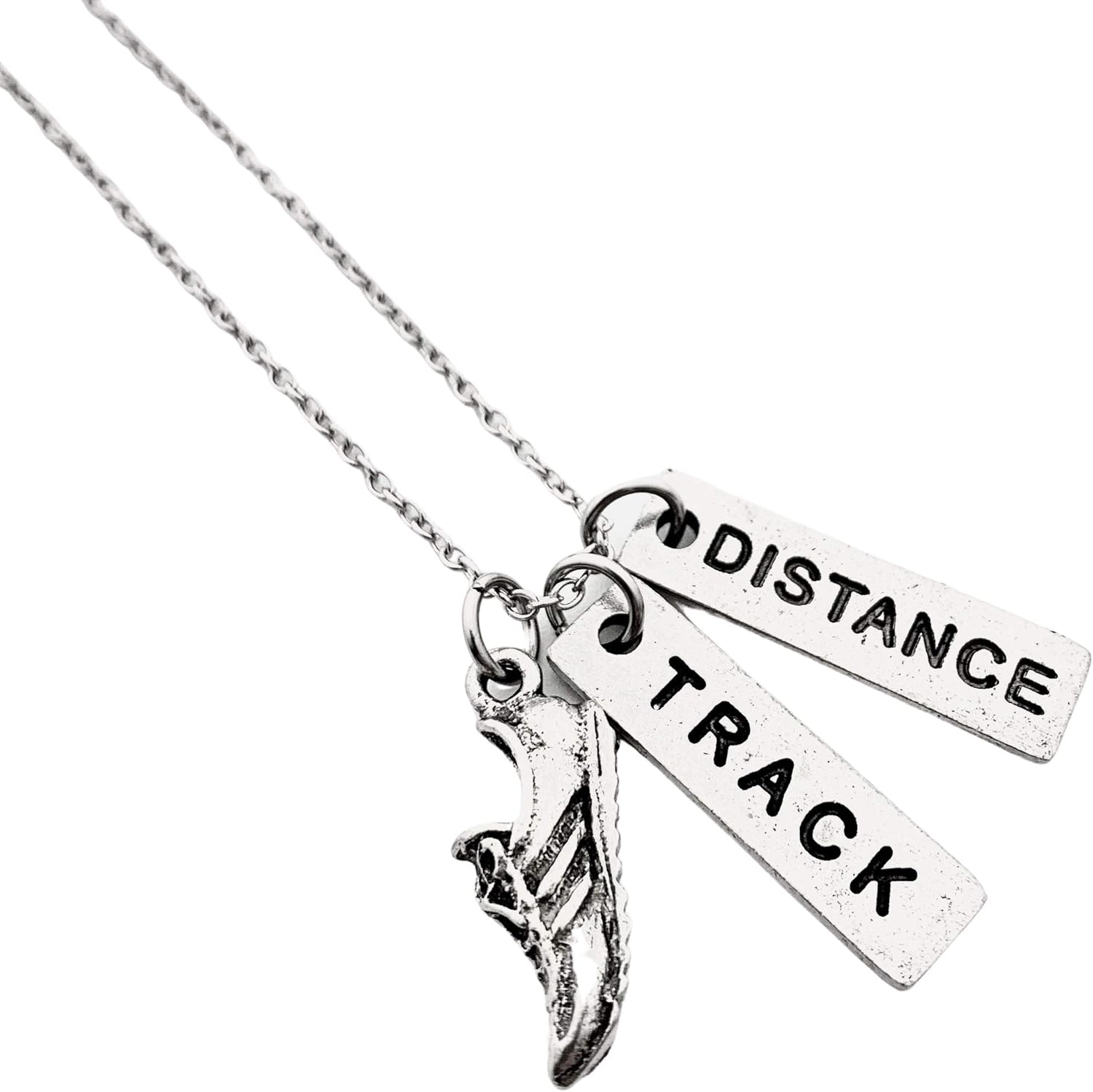 Pewter RUN TRACK DISTANCE Necklace - Pewter Running Shoe Charm, Pewter TRACK Pendant and Pewter DISTANCE Pendant on 18 inch Stainless Steel Cable Chain - All Pewter