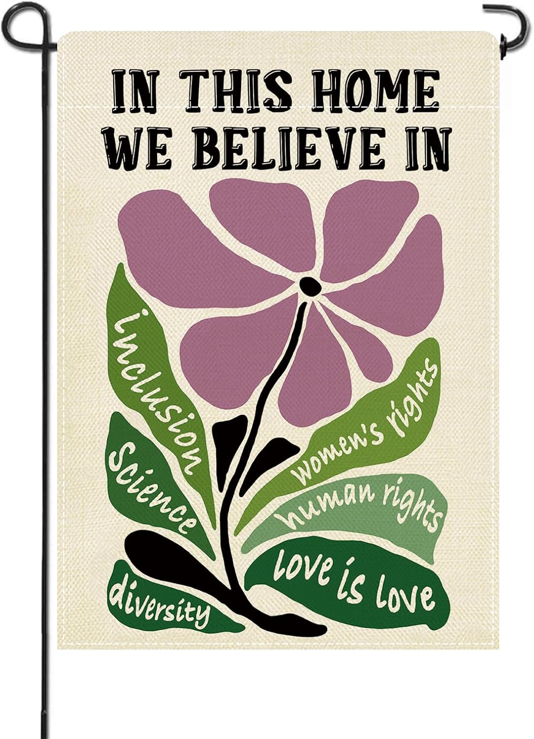 Artofy in This Home We Believe in Daisy Small Decorative Garden Flag, Women's Rights Human Rights Love is Love Yard Outside Decor, Peace Equality Diversity Outdoor Decoration Double Sided 12 x 18