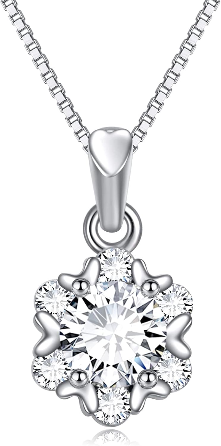 2CT Moissanite Pendant Necklace for Women, 18K White Gold Plated 925 Sterling Silver D Color Ideal Cut Moissanite Diamond Necklace with Box Chain Birthday Mothers Day Gift for Mom Her Wife